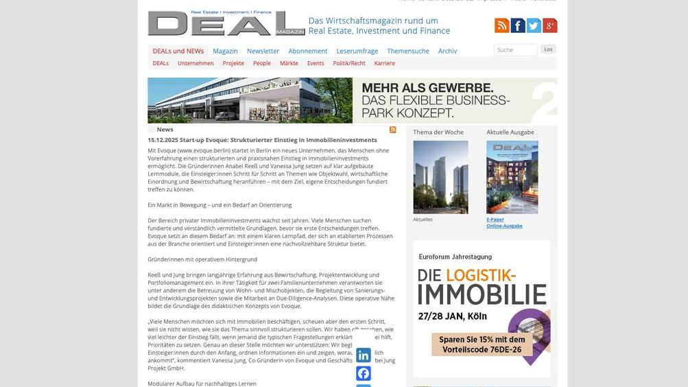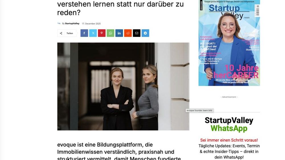 Start-up Evoque: Strukturierter Einstieg in Immobilieninvestments